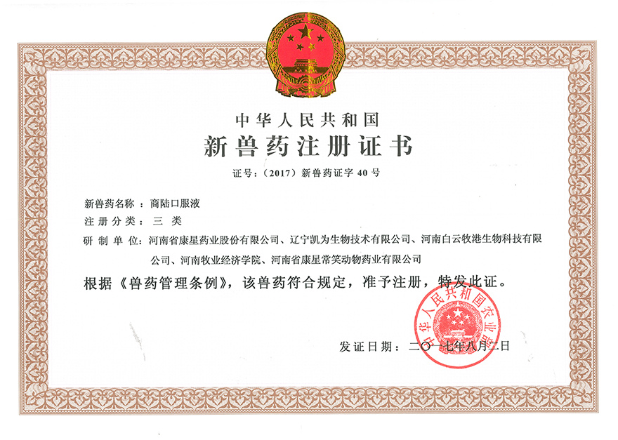 企業(yè)在發(fā)展過程中,十分重視知識產(chǎn)權(quán)和科研成果的保護工作,目前公司共有4項發(fā)明專利,1項國家三類新獸藥證書。為表彰我公司在科研工作中做出的突出貢獻(xiàn),錦州市科技局認(rèn)定我公司為2015年錦州市科技創(chuàng)新型中小企業(yè)。